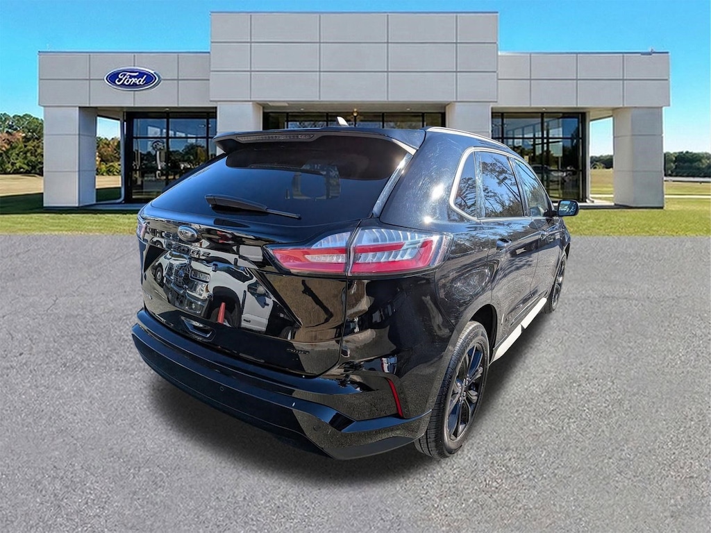 The Edge SE's sleek black exterior, paired with the Black Appearance Package, creates a bold and sophisticated look. Inside, you'll find a well-appointed cabin with features like SYNC 4A with Enhanced Voice Recognition, dual-zone automatic climate control, and a rearview camera to make every drive more enjoyable.