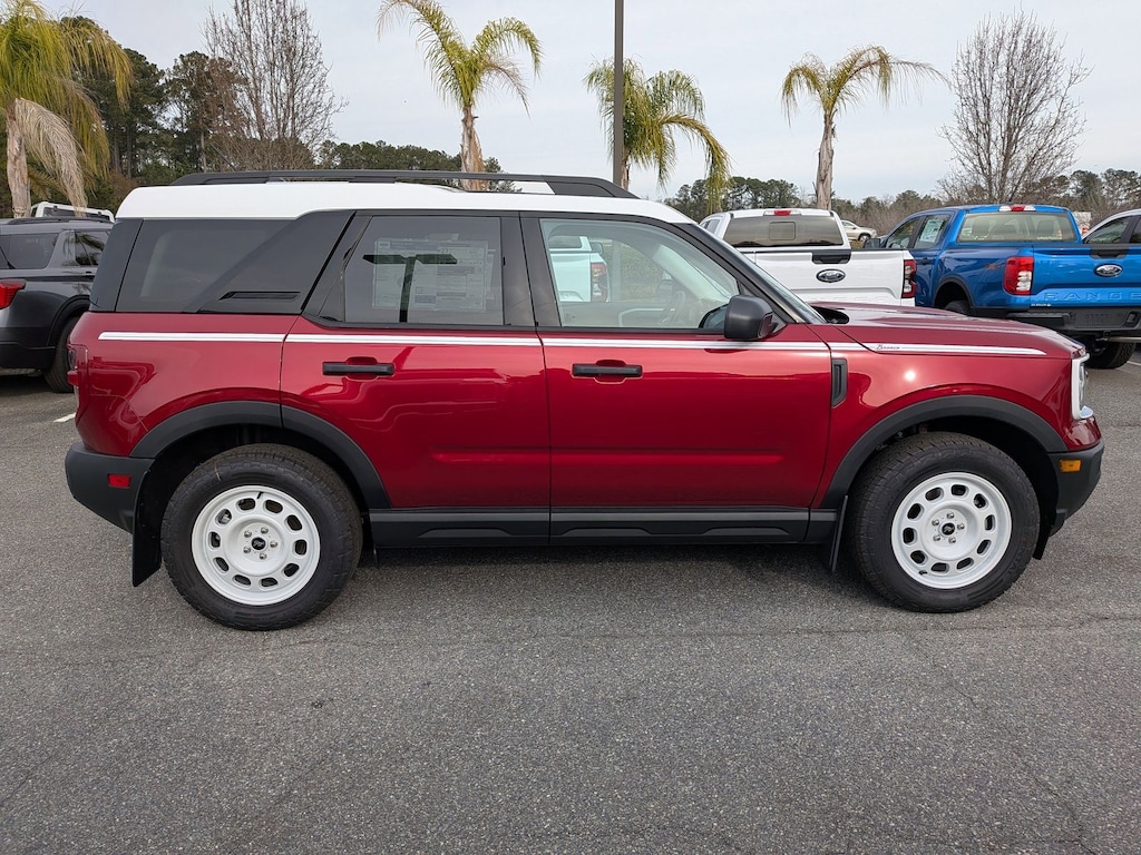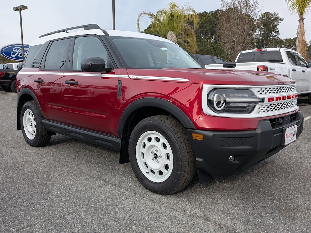 ****SHIPPING AVAILABLE NATIONWIDE! COMPLETE THE ENTIRE TRANSACTION WITHOUT COMING TO THE SHOWROOM!**** O C Welch Ford is pleased to offer this great-looking 2025 Ford Bronco Sport Ruby Red Metallic Heritage with the following features: Convenience Package (Front Driver/Passenger Seat Back Map Pockets, Heated 8-Way Power Driver's Seat, LED Fog Lamps, Premium Wrapped Steering Wheel, and Universal Garage Door Opener (UGDO)), Equipment Group 250A, 4-Wheel Disc Brakes, 6 Speakers, ABS brakes, Air Conditioning, Alloy wheels, AM/FM radio: SiriusXM, AM/FM Stereo, Auto High-beam Headlights, Automatic temperature control, Brake assist, Cargo Management System (Shelf/Divider/Table), Cargo Mat, Compass, Cruise Control, Delay-off headlights, Driver door bin, Driver vanity mirror, Dual front impact airbags, Dual front side impact airbags, Electronic Stability Control, Emergency communication system: SYNC 4 911 Assist, Four wheel independent suspension, Front & Rear Splash Guards, Front anti-roll bar, Front Bucket Seats, Front Center Armrest, Front reading lights, Fully automatic headlights, Heated door mirrors, Illuminated entry, Knee airbag, Low tire pressure warning, Occupant sensing airbag, Outside temperature display, Overhead airbag, Overhead console, Panic alarm, Passenger door bin, Passenger vanity mirror, Plaid Cloth Front Bucket Seats, Power door mirrors, Power Moonroof, Power steering, Power windows, Radio data system, Rear anti-roll bar, Rear Parking Sensors, Rear reading lights, Rear seat center armrest, Rear window defroster, Rear window wiper, Remote keyless entry, Security system, SiriusXM, Speed-sensing steering, Speed-Sensitive Wipers, Split folding rear seat, Steering wheel mounted audio controls, SYNC 4 w/Enhanced Voice Recognition, Tachometer, Telescoping steering wheel, Tilt steering wheel, Traction control, Trip computer, Variably intermittent wipers, and Wheels: 17" Oxford White-Painted Aluminum. Factory MSRP: $40,060 $4,282 off MSRP!