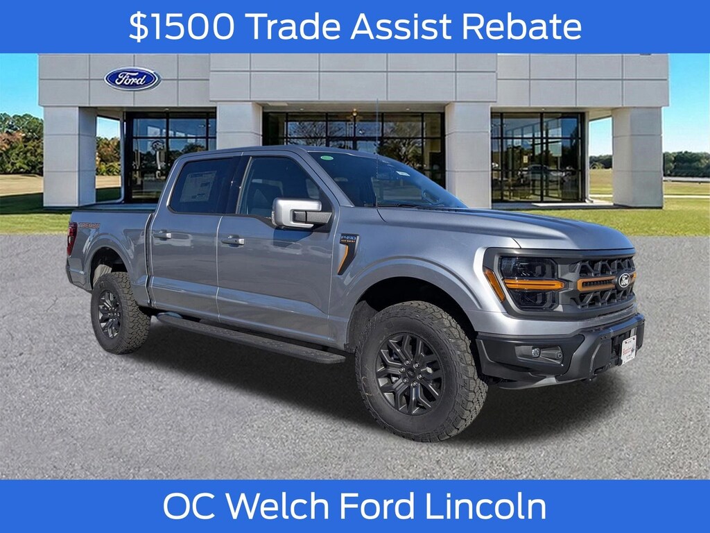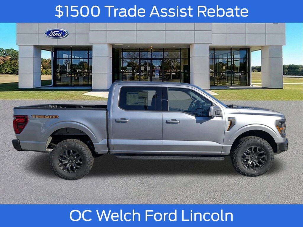 ****SHIPPING AVAILABLE NATIONWIDE! COMPLETE THE ENTIRE TRANSACTION WITHOUT COMING TO THE SHOWROOM!**** O C Welch Ford is pleased to offer this great 2025 Ford F-150 Silver Metallic Tremor with the following features: Bed Utility Package (4 Pickup Box Tie-Down Plates, LED Box Lighting, and Power Tailgate), Equipment Group 402A High (2nd Row Heated Seats, Ambient Lighting, Auto-Dimming Rear-View Mirror, Front Axle w/Torsen Differential, Heads-Up Display, Heated Steering Wheel, LED Taillamps, Media Bin Door, Modular Front Bumper & Carbon Black Rear Bumper, Power Glass Heated Sideview Mirrors, Power-Adjustable Pedals w/Memory, Premium Wrapped Steering Wheel, Radio: B&O Unleashed Sound System by Bang & Olufsen, Rain-Sensing Wipers, Two-Speed Automatic AWD w/Mechanical Locking 4WD, Unique Tremor Leather-Trimmed Bucket Seats, and Universal Garage Door Opener), GVWR: 7,100 lbs Payload Package, Mobile Office Package (Console Worksurface, Partitioned Lockable Rear Storage, and Wireless Charging), Tow/Haul Package (Integrated Trailer Brake Controller), 4-Wheel Disc Brakes, 8 Speakers, ABS brakes, Adjustable pedals, Air Conditioning, Alloy wheels, AM/FM radio: SiriusXM with 360L, Auto High-beam Headlights, Auto-dimming door mirrors, Auto-dimming Rear-View mirror, Automatic temperature control, B&O Sound System, Brake assist, Bumpers: body-color, Compass, Cruise Control, Delay-off headlights, Driver door bin, Driver vanity mirror, Dual front impact airbags, Dual front side impact airbags, Electronic Locking w/3.73 Axle Ratio, Electronic Stability Control, Emergency communication system: SYNC 4 911 Assist, Front anti-roll bar, Front Bucket Seats, Front Center Armrest, Front dual zone A/C, Front fog lights, Front reading lights, Front wheel independent suspension, Fully automatic headlights, Heated front seats, Heated door mirrors, Illuminated entry, Internet access capable: FordPass Connect 5G, Low tire pressure warning, Navigation system: Connected Navigation, Occupant sensing airbag, Outside temperature display, Overhead airbag, Overhead console, Panic alarm, Passenger door bin, Passenger vanity mirror, Power door mirrors, Power driver seat, Power passenger seat, Power steering, Power windows, Radio data system, Rear reading lights, Rear step bumper, Rear window defroster, Remote keyless entry, Security system, Split folding rear seat, Steering wheel mounted audio controls, SYNC 4 w/Enhanced Voice Recognition, Tachometer, Tailgate Step w/Tailgate Work Surface, Telescoping steering wheel, Tilt steering wheel, Tough Bed Spray-In Bedliner, Traction control, Tray Style Floor Liner w/Carpet Mats, Trip computer, Turn signal indicator mirrors, Unique Sport Cloth 40/Console/40 Power Front Seat, Variably intermittent wipers, Voltmeter, and Wheels: 18" Alloy w/Dark Matte Finish. Factory MSRP: $80,270 $10,241 off MSRP!