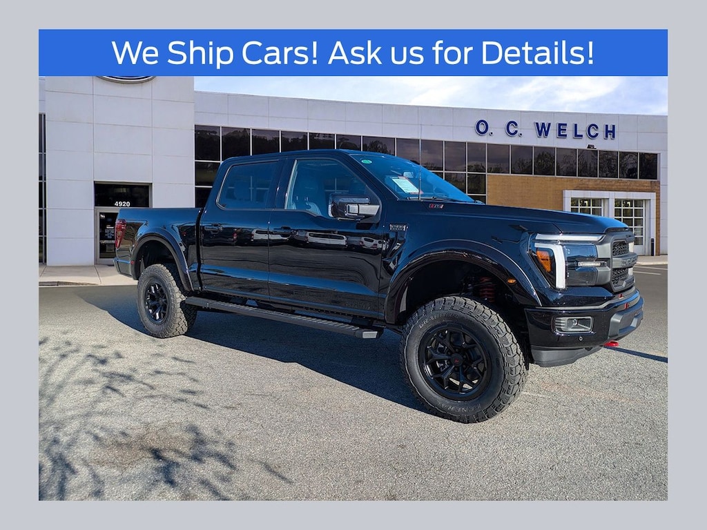 ****SHIPPING AVAILABLE NATIONWIDE! COMPLETE THE ENTIRE TRANSACTION WITHOUT COMING TO THE SHOWROOM!**** O C Welch Ford is pleased to offer this charming-looking 2025 Ford F-150 Black Metallic Roush RT6 with the following features: Bed Utility Package (4 Pickup Box Tie-Down Plates, LED Box Lighting, Power Tailgate, and Pro Access Tailgate), Equipment Group 502A High (2nd Row Heated Seats, Ambient Lighting - Ice Blue Color Only, Heads-Up Display, Illuminated Driver & Passenger Visors, Power-Sliding Rear Window, Radio: B&O Unleashed Sound System by Bang & Olufsen, and Wheels: 20" Chrome-Like PVD), Mobile Office Package (Console Worksurface, Partitioned Lockable Rear Storage, and Wireless Charging), Tow/Haul Package, 4-Wheel Disc Brakes, 6" Extended Running Boards, 8 Speakers, ABS brakes, ActiveX Trimmed Bucket Seats, Adjustable pedals, Air Conditioning, Alloy wheels, AM/FM radio: SiriusXM with 360L, Auto High-beam Headlights, Auto-dimming door mirrors, Auto-dimming Rear-View mirror, Automatic temperature control, B&O Sound System, Brake assist, Bumpers: chrome, Chrome wheels, Compass, Cruise Control, Delay-off headlights, Driver door bin, Driver vanity mirror, Dual front impact airbags, Dual front side impact airbags, Electronic Stability Control, Emergency communication system: SYNC 4 911 Assist, Front anti-roll bar, Front Bucket Seats, Front Center Armrest, Front dual zone A/C, Front fog lights, Front reading lights, Front wheel independent suspension, Fully automatic headlights, Garage door transmitter, Heated front seats, Heated door mirrors, Heated steering wheel, Illuminated entry, Low tire pressure warning, Memory seat, Navigation system: Connected Navigation, Occupant sensing airbag, Outside temperature display, Overhead airbag, Overhead console, Panic alarm, Passenger door bin, Passenger vanity mirror, Pedal memory, Power door mirrors, Power driver seat, Power passenger seat, Power steering, Power windows, Radio data system, Rain sensing wipers, Rear reading lights, Rear seat center armrest, Rear step bumper, Rear window defroster, Remote keyless entry, Security system, Split folding rear seat, Steering wheel mounted audio controls, SYNC 4 w/Enhanced Voice Recognition, Tachometer, Telescoping steering wheel, Tilt steering wheel, Traction control, Trip computer, Turn signal indicator mirrors, Twin Panel Moonroof, Variably intermittent wipers, Ventilated front seats, Voltmeter, Wheel Well Liner, and Wheels: 18" Chrome-Like PVD. Factory MSRP: $110,421 $13,609 off MSRP!