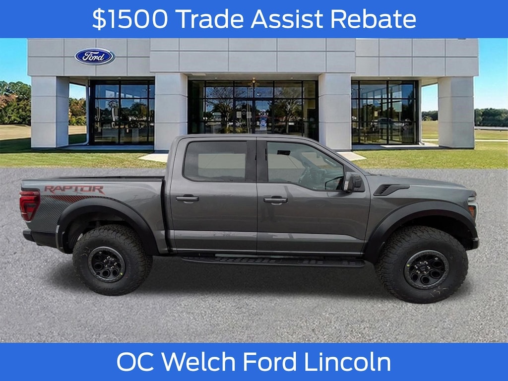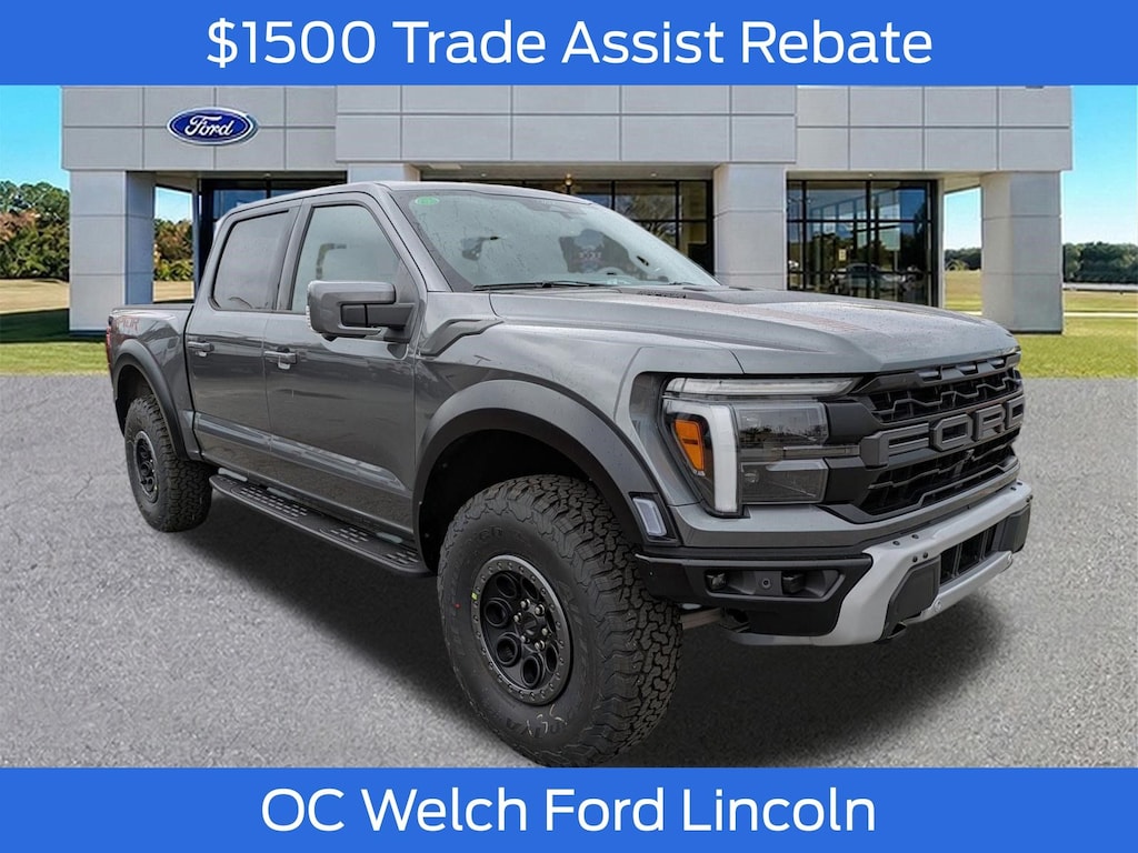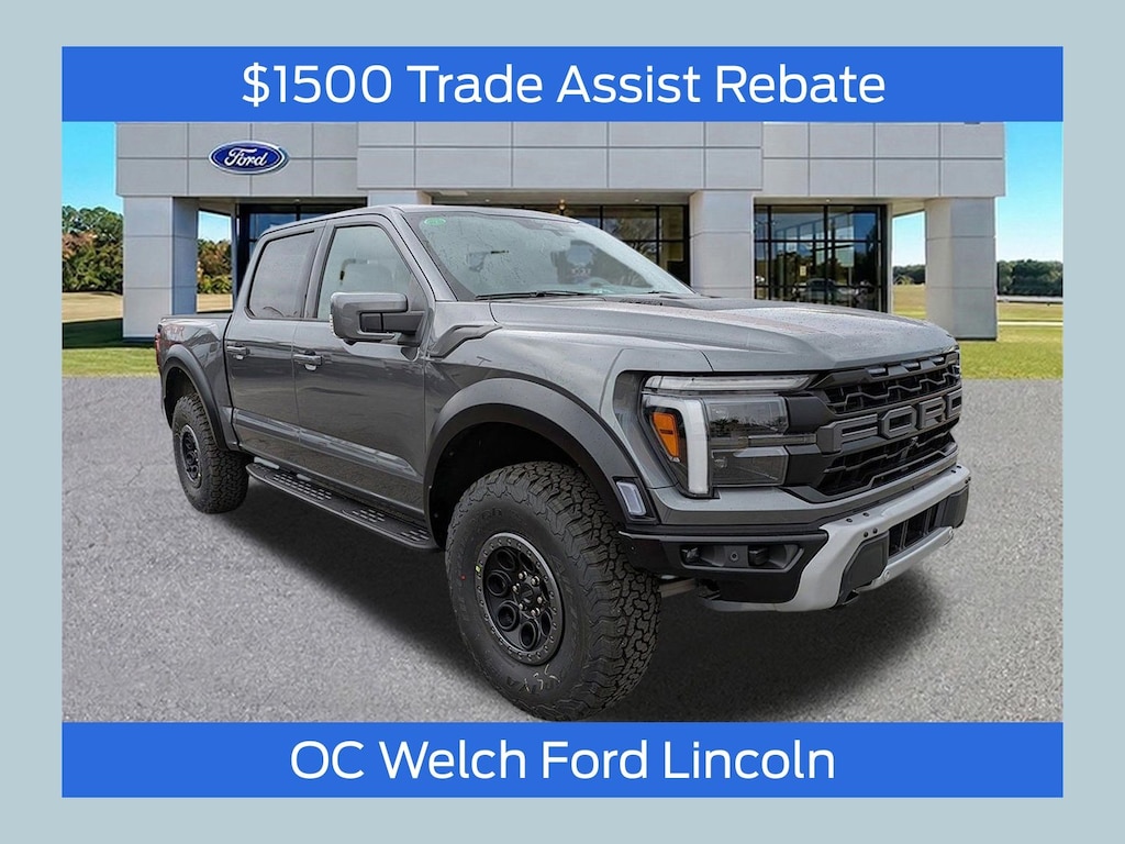 ****SHIPPING AVAILABLE NATIONWIDE! COMPLETE THE ENTIRE TRANSACTION WITHOUT COMING TO THE SHOWROOM!**** O C Welch Ford is pleased to offer this great-looking 2025 Ford F-150 Gray Metallic Raptor with the following features: Equipment Group 802A Raptor 37 (Carbon Fiber Interior Appliques, Dual Valve Shocks, Modular Front Bumper, RECARO Alcantara Suede Front Seats, and Wheels: Raptor 37 Unique 17" Cast Aluminum), 14 Speakers, 17" Cast Aluminum Wheels, 4-Wheel Disc Brakes, ABS brakes, Adjustable pedals, Air Conditioning, Alloy wheels, AM/FM radio: SiriusXM with 360L, Auto High-beam Headlights, Auto tilt-away steering wheel, Auto-dimming door mirrors, Auto-dimming Rear-View mirror, Automatic temperature control, Brake assist, Bumpers: body-color, Compass, Cruise Control, Delay-off headlights, Driver door bin, Driver vanity mirror, Dual front impact airbags, Dual front side impact airbags, Electronic Locking w/4.10 Axle Ratio, Electronic Stability Control, Emergency communication system: SYNC 4 911 Assist, Front anti-roll bar, Front Bucket Seats, Front Center Armrest, Front dual zone A/C, Front fog lights, Front reading lights, Front wheel independent suspension, Fully automatic headlights, Garage door transmitter, Heads-Up Display, Heated front seats, Heated door mirrors, Heated rear seats, Heated steering wheel, Illuminated entry, Internet access capable: FordPass Connect 5G, Lane Departure Warning System, Leather steering wheel, Leather Trimmed Seats, Low tire pressure warning, Memory seat, Navigation system: Connected Navigation, Occupant sensing airbag, Outside temperature display, Overhead airbag, Overhead console, Panic alarm, Passenger door bin, Passenger vanity mirror, Pedal memory, Power door mirrors, Power driver seat, Power passenger seat, Power steering, Power windows, Radio data system, Radio: B&O Unleashed Sound System by Bang & Olufsen, Rain sensing wipers, Rear reading lights, Rear step bumper, Rear window defroster, Remote keyless entry, Security system, Speed-sensing steering, Split folding rear seat, Steering wheel memory, Steering wheel mounted audio controls, SYNC 4 w/Enhanced Voice Recognition, Tachometer, Telescoping steering wheel, Tilt steering wheel, Tough Bed Spray-In Bedliner, Traction control, Trip computer, Turn signal indicator mirrors, Twin Panel Moonroof, Variably intermittent wipers, and Ventilated front seats. Factory MSRP: $95,190 $5,243 off MSRP!