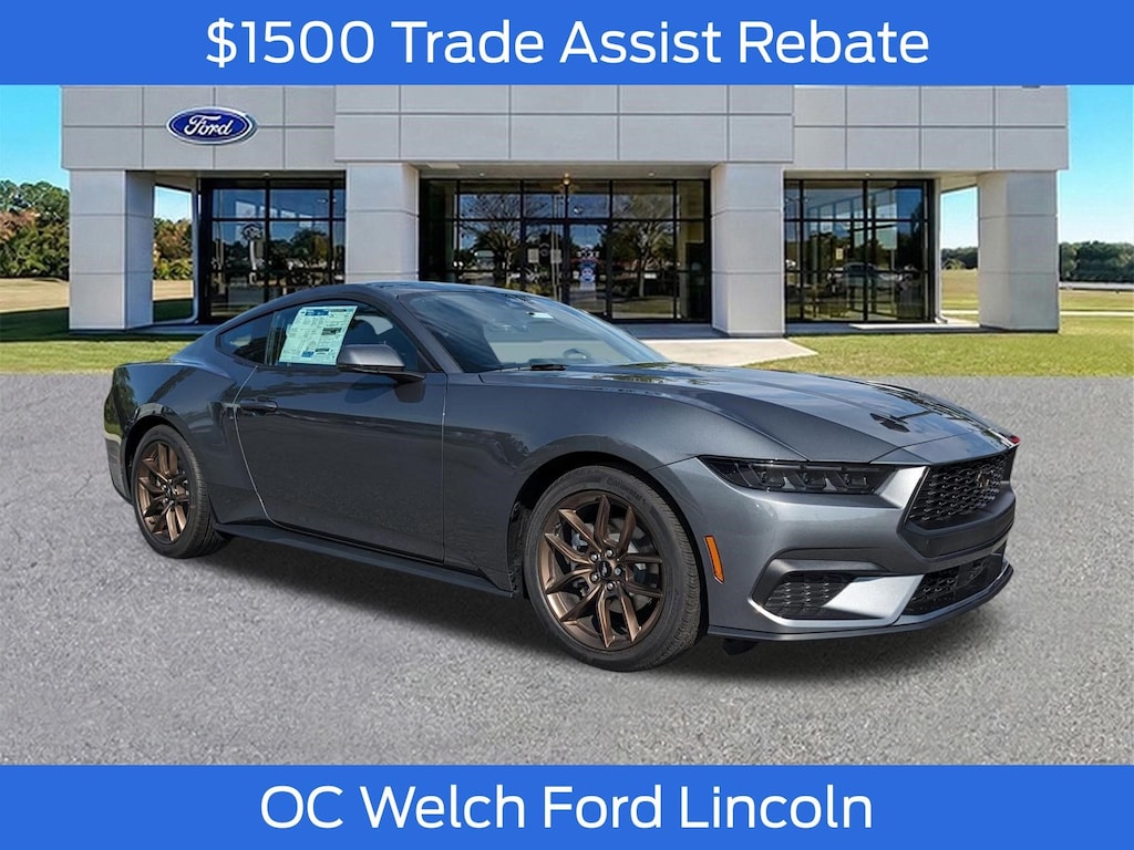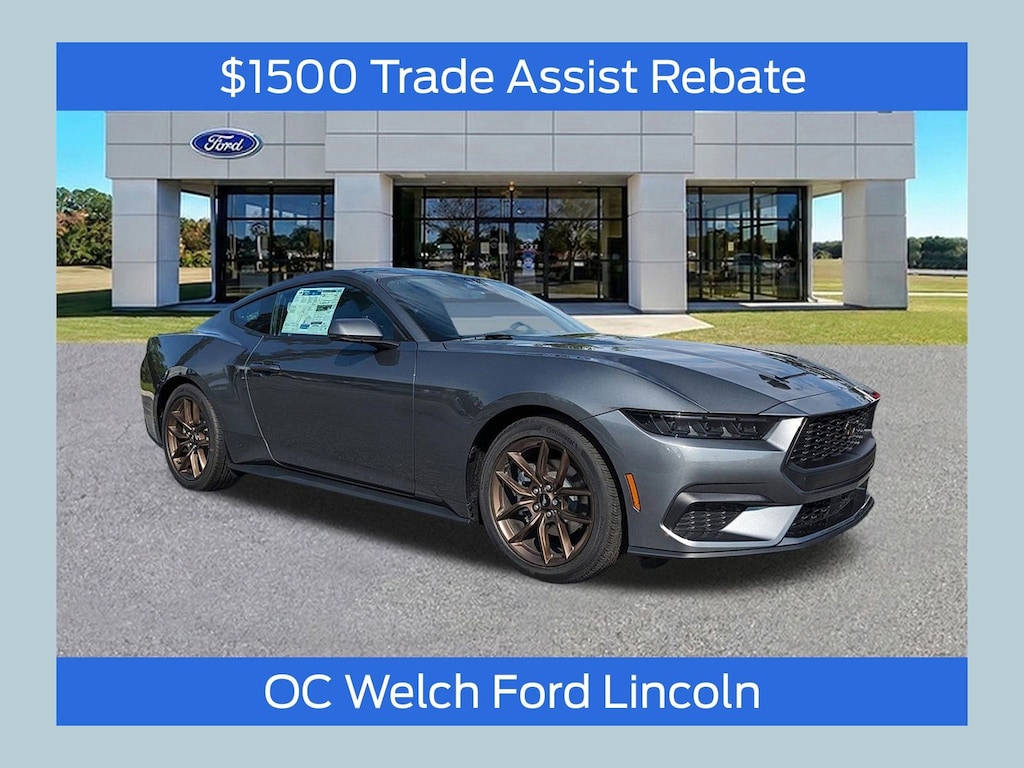 ****SHIPPING AVAILABLE NATIONWIDE! COMPLETE THE ENTIRE TRANSACTION WITHOUT COMING TO THE SHOWROOM!**** O C Welch Ford is pleased to offer this outstanding-looking 2025 Ford Mustang Gray Metallic EcoBoost Premium with the following features: 4-Wheel Disc Brakes, ABS brakes, Air Conditioning, Alloy wheels, AM/FM Stereo, Auto High-beam Headlights, Automatic temperature control, Brake assist, Bumpers: body-color, Compass, Cruise Control, Delay-off headlights, Driver door bin, Driver vanity mirror, Dual front impact airbags, Dual front side impact airbags, Electronic Stability Control, Emergency communication system: 911 Assist, Exterior Parking Camera Rear, Floor Mats, 1st Row, Black w/Black Pony Logo, Four wheel independent suspension, Front anti-roll bar, Front Bucket Seats, Front Center Armrest, Front dual zone A/C, Front reading lights, Fully automatic headlights, Illuminated entry, Internet access capable: FordPass Connect, Knee airbag, Leather Shift Knob, Low tire pressure warning, Occupant sensing airbag, Outside temperature display, Overhead airbag, Overhead console, Panic alarm, Passenger door bin, Passenger vanity mirror, Power door mirrors, Power steering, Power windows, Radio data system, Rain sensing wipers, Rear anti-roll bar, Rear Parking Sensors, Rear window defroster, Remote keyless entry, Speed-sensing steering, Speed-Sensitive Wipers, Split folding rear seat, Sport steering wheel, Steering wheel mounted audio controls, SYNC 4, Tachometer, Telescoping steering wheel, Tilt steering wheel, Traction control, Trip computer, Variably intermittent wipers, Voltmeter, and Wheels: 18" x 8" Machined-Face Aluminum. Factory MSRP: $43,820 $5,073 off MSRP!