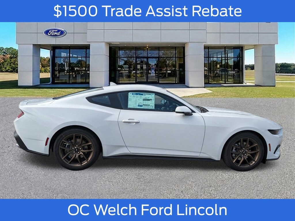****SHIPPING AVAILABLE NATIONWIDE! COMPLETE THE ENTIRE TRANSACTION WITHOUT COMING TO THE SHOWROOM!**** O C Welch Ford is pleased to offer this attractive-looking 2025 Ford Mustang Oxford White EcoBoost Premium with the following features: 4-Wheel Disc Brakes, ABS brakes, Air Conditioning, Alloy wheels, AM/FM Stereo, Auto High-beam Headlights, Automatic temperature control, Brake assist, Bumpers: body-color, Compass, Cruise Control, Delay-off headlights, Driver door bin, Driver vanity mirror, Dual front impact airbags, Dual front side impact airbags, Electronic Stability Control, Emergency communication system: 911 Assist, Exterior Parking Camera Rear, Floor Mats, 1st Row, Black w/Black Pony Logo, Four wheel independent suspension, Front anti-roll bar, Front Bucket Seats, Front Center Armrest, Front dual zone A/C, Front reading lights, Fully automatic headlights, Illuminated entry, Internet access capable: FordPass Connect, Knee airbag, Leather Shift Knob, Low tire pressure warning, Occupant sensing airbag, Outside temperature display, Overhead airbag, Overhead console, Panic alarm, Passenger door bin, Passenger vanity mirror, Power door mirrors, Power steering, Power windows, Radio data system, Rain sensing wipers, Rear anti-roll bar, Rear Parking Sensors, Rear window defroster, Remote keyless entry, Speed-sensing steering, Speed-Sensitive Wipers, Split folding rear seat, Sport steering wheel, Steering wheel mounted audio controls, SYNC 4, Tachometer, Telescoping steering wheel, Tilt steering wheel, Traction control, Trip computer, Variably intermittent wipers, Voltmeter, and Wheels: 18" x 8" Machined-Face Aluminum. Factory MSRP: $43,820 $5,073 off MSRP!
