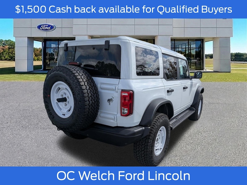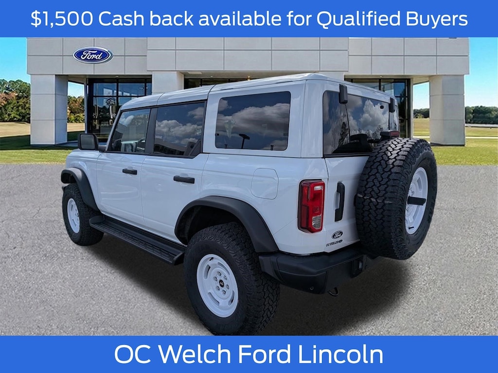 ****SHIPPING AVAILABLE NATIONWIDE! COMPLETE THE ENTIRE TRANSACTION WITHOUT COMING TO THE SHOWROOM!**** O C Welch Ford is pleased to offer this fantastic 2026 Ford Bronco Oxford White Heritage Edition with the following features: Equipment Group 662A Mid Package (AM/FM Stereo, Connected Navigation, Plaid Cloth Front Heated Bucket Seats, SiriusXM with 360L, SYNC 4, and Wheels: 17" Unique White), Ford Connectivity Package (1-Year Included), 4-Wheel Disc Brakes, 7 Speakers, ABS brakes, Air Conditioning, Alloy wheels, AM/FM radio: SiriusXM with 360L, Auto High-beam Headlights, Auto-dimming Rear-View mirror, Automatic temperature control, Brake assist, Compass, Convertible HardTop, Convertible roof lining, Cruise Control, Delay-off headlights, Driver door bin, Driver vanity mirror, Dual front impact airbags, Dual front side impact airbags, Electronic Stability Control, Emergency communication system: 911 Assist, Exterior Parking Camera Rear, Front anti-roll bar, Front Bucket Seats, Front Center Armrest, Front dual zone A/C, Front fog lights, Front reading lights, Front wheel independent suspension, Fully automatic headlights, Glass rear window, Heated front seats, Heated door mirrors, Heated steering wheel, Illuminated entry, Integrated roll-over protection, Low tire pressure warning, Navigation system: Connected Navigation, Occupant sensing airbag, Outside temperature display, Overhead airbag, Overhead console, Panic alarm, Passenger door bin, Passenger vanity mirror, Power door mirrors, Power steering, Power windows, Radio data system, Rear window defroster, Rear window wiper, Remote keyless entry, Security system, Split folding rear seat, Steering wheel mounted audio controls, Tachometer, Telescoping steering wheel, Tilt steering wheel, Traction control, Trip computer, and Variably intermittent wipers. Factory MSRP: $53,620 $1,500 off MSRP!