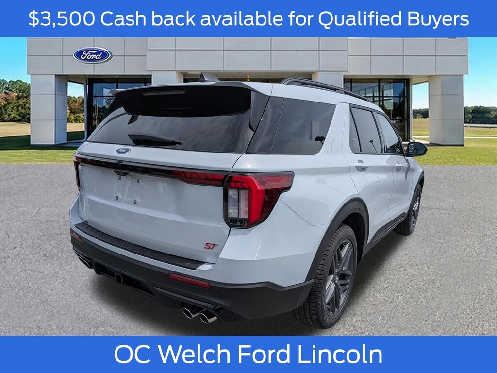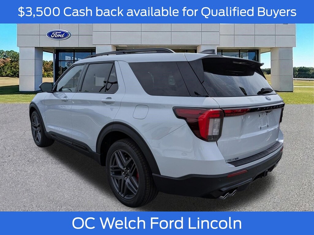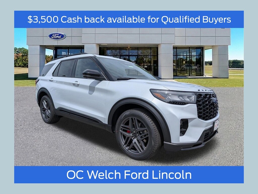 ****SHIPPING AVAILABLE NATIONWIDE! COMPLETE THE ENTIRE TRANSACTION WITHOUT COMING TO THE SHOWROOM!**** O C Welch Ford is pleased to offer this charming 2026 Ford Explorer White ST with the following features: Equipment Group 400A Standard Package (Heated/Ventilated Miko Suede Captain's Chairs, Radio: B&O Sound System by Bang and Olufsen, and Wheels: 21" Magnetite-Painted Aluminum), Sun and Sound Package (B&O Sound System, Multicontour Seats with Front Active Motion, Panoramic Fixed Glass Roof with Power Shade, and Remote Control Front Windows), 10 Speakers, 3rd row seats: bench, 4-Wheel Disc Brakes, ABS brakes, Air Conditioning, Alloy wheels, AM/FM radio: SiriusXM with 360L, Apple CarPlay/Android Auto, Auto High-beam Headlights, Auto-dimming door mirrors, Auto-dimming Rear-View mirror, Automatic temperature control, Brake assist, Bumpers: body-color, Compass, Cruise Control, Delay-off headlights, Driver door bin, Driver vanity mirror, Dual front impact airbags, Dual front side impact airbags, Electronic Stability Control, Emergency communication system: 911 Assist, Exterior Parking Camera Rear, Four wheel independent suspension, Front and 2nd Rows Floor Liners with Carper Floor Mats, Front anti-roll bar, Front Bucket Seats, Front Center Armrest, Front dual zone A/C, Front fog lights, Front reading lights, Fully automatic headlights, Garage door transmitter, Heated front seats, Heated door mirrors, Heated rear seats, Heated steering wheel, Illuminated entry, Knee airbag, Leather steering wheel, Low tire pressure warning, Memory seat, Navigation System, Occupant sensing airbag, Outside temperature display, Overhead airbag, Overhead console, Panic alarm, Passenger door bin, Passenger vanity mirror, Power door mirrors, Power driver seat, Power Liftgate, Power passenger seat, Power steering, Power windows, Rain sensing wipers, Rear air conditioning, Rear anti-roll bar, Rear reading lights, Rear window defroster, Rear window wiper, Remote keyless entry, SecuriCode Keyless Entry Keypad, Security system, Speed-sensing steering, Speed-Sensitive Wipers, Split folding rear seat, Spoiler, Sport steering wheel, Steering wheel mounted audio controls, Tachometer, Telescoping steering wheel, Tilt steering wheel, Traction control, Trip computer, Turn signal indicator mirrors, Variably intermittent wipers, and Ventilated front seats. Factory MSRP: $62,695 $5,941 off MSRP!