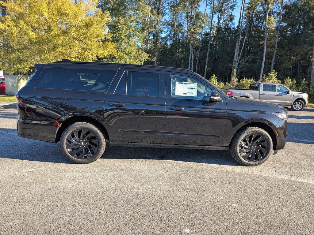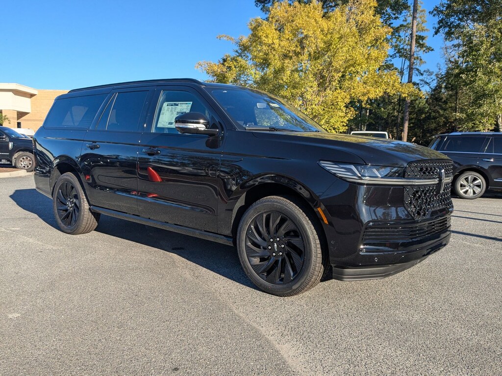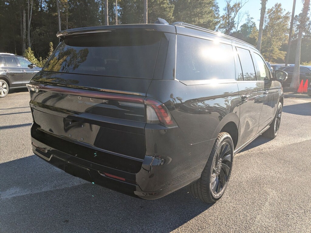 This 2025 Lincoln Navigator L Reserve is loaded with the following Factory Options:Equipment Group 202A Reserve II, Heavy-Duty Trailer Tow Package (26mm Engine Radiator and Trailer Brake Controller), Jet Appearance Package (Black Accent Badge, Black Accent Interior Pack, Black Beltline Molding, Black Painted Roof Rails, Front Bumper Fascia, Lincoln Lit Star, Unique Lincoln Grille Pillar Black Surround, and Wheels: 22" High-Gloss Ebony Aluminum), 28 Speakers, 3rd row seats: split-bench, 4-Wheel Disc Brakes, ABS brakes, Adaptive suspension, Adjustable pedals, Air Conditioning, All-Weather Flr Liners w/Fr & Rr Carpet Floor Mats, Alloy wheels, AM/FM radio: SiriusXM with 360L, Apple CarPlay/Android Auto, Audio memory, Auto High-beam Headlights, Auto Htd & Ventilated Premium Lthr Captain's Chair, Auto Start-Stop Technology, Auto tilt-away steering wheel, Auto-dimming door mirrors, Auto-dimming Rear-View mirror, Auto-leveling suspension, Automatic temperature control, Brake assist, Bumpers: body-color, Compass, Cruise Control, Delay-off headlights, Driver door bin, Driver vanity mirror, Driver's Seat Mounted Armrest, Dual front impact airbags, Dual front side impact airbags, Electronic Stability Control, Emergency communication system: 911 Assist, Exterior Parking Camera Rear, Four wheel independent suspension, Front anti-roll bar, Front Bucket Seats, Front dual zone A/C, Front License Plate Bracket, Front reading lights, Fully automatic headlights, Garage door transmitter, Heated front seats, Heated door mirrors, Heated rear seats, Heated steering wheel, HVAC memory, Illuminated entry, Leather steering wheel, Lincoln Connect, Lincoln Premium Connectivity, Low tire pressure warning, Memory seat, Navigation system: Connected Navigation (1-year trial), Occupant sensing airbag, Outside temperature display, Overhead airbag, Overhead console, Panic alarm, Passenger door bin, Passenger seat mounted armrest, Passenger vanity mirror, Pedal memory, Power adjustable front head restraints, Power adjustable rear head restraints, Power door mirrors, Power driver seat, Power moonroof, Power passenger seat, Power steering, Power windows, Radio data system, Radio: Revel Ultima 3D AM/FM/HD Audio System, Rain sensing wipers, Rear air conditioning, Rear anti-roll bar, Rear audio controls, Rear reading lights, Rear window defroster, Rear window wiper, Reclining 3rd row seat, Remote keyless entry, Security system, SiriusXM w/360L, Speed-sensing steering, Speed-Sensitive Wipers, Split folding rear seat, Spoiler, Steering wheel memory, Steering wheel mounted audio controls, Tachometer, Telescoping steering wheel, Tilt steering wheel, Traction control, Trip computer, Turn signal indicator mirrors, Variably intermittent wipers, Ventilated front seats, and Wheels: 22" Dark Tarnished Aluminum. Factory MSRP: $109,675