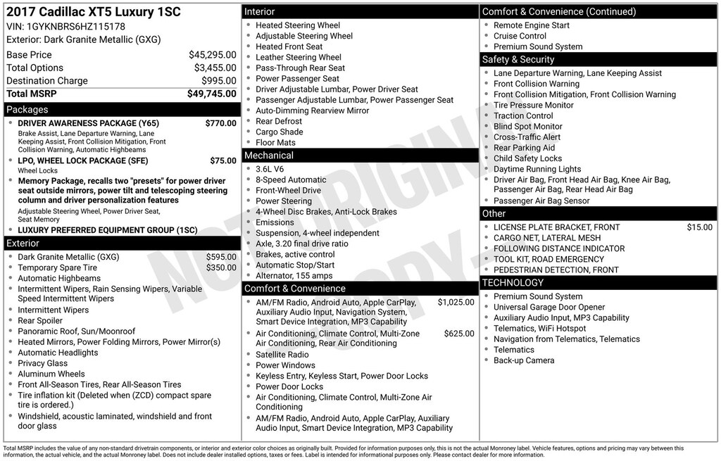 Used 2017 CadillacXT5 Luxury V6 DI VVT R18542A