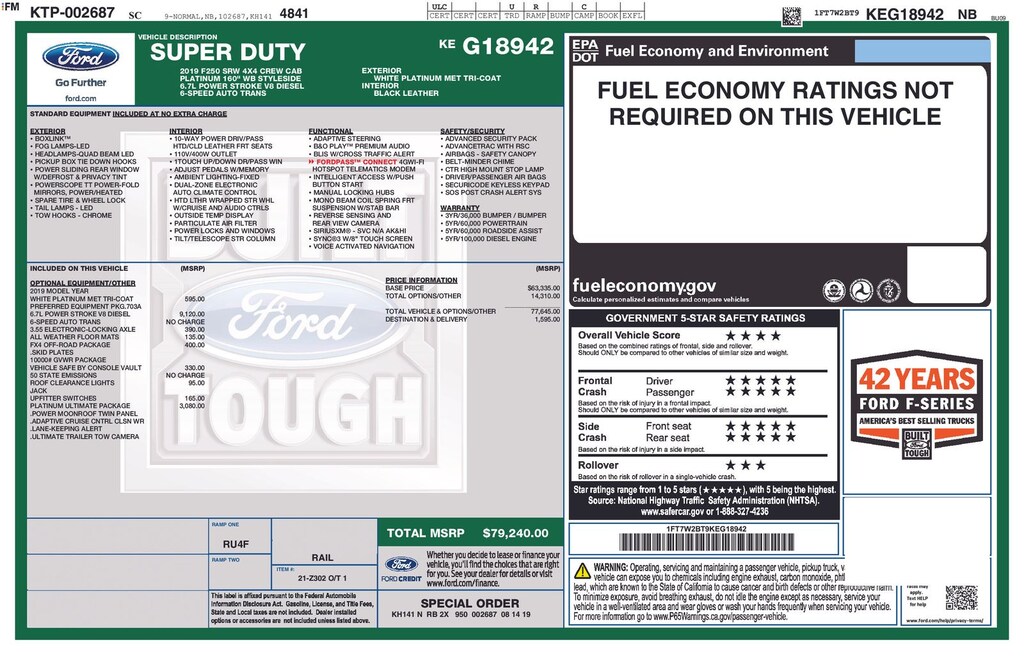 Experience the power, versatility, and refinement of this 2019 Ford F-250SD Platinum. Visit our showroom today and let us demonstrate how this exceptional vehicle can transform your driving experience.
