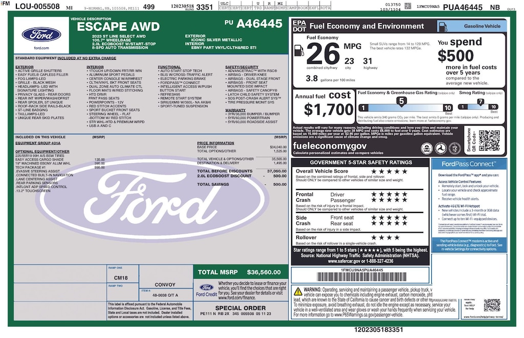 With a city fuel economy of 23 MPG and a highway rating of 31 MPG, this Escape ST-Line Select delivers impressive efficiency without compromising its dynamic performance. Whether you're commuting or embarking on a weekend adventure, this SUV is ready to exceed your expectations.