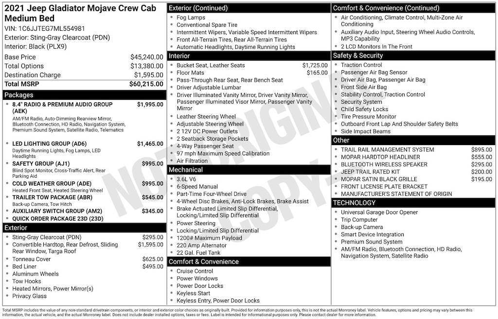 Elevate your driving experience with the 2021 Jeep Gladiator Mojave. This exceptional off-road-focused truck combines rugged capability, premium comfort, and advanced technology to deliver a truly remarkable driving experience. Visit our showroom today to explore this remarkable vehicle in person and discover how it can transform your adventures.