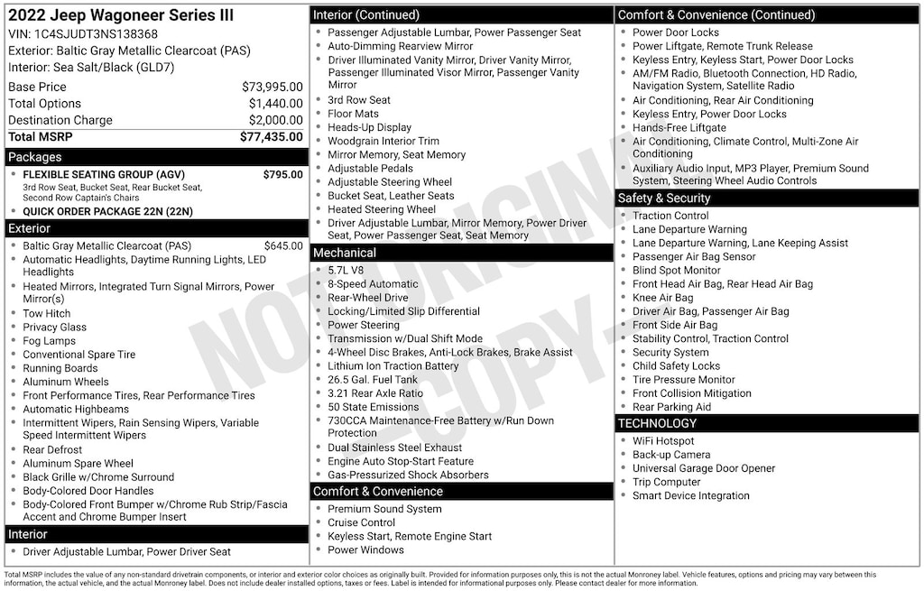 Introducing the 2022 Jeep Wagoneer Series III, a captivating SUV that combines exceptional capabilities with unparalleled style and comfort. This stunning vehicle, finished in a sleek Gray exterior, is poised to elevate your driving experience to new heights.