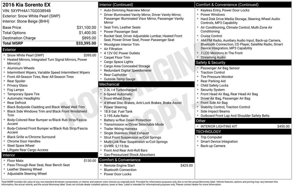With a clean CARFAX history and a list price of just $8,995, this 2016 Kia Sorento EX represents an exceptional value in the pre-owned SUV market. Don't miss the opportunity to make this impressive vehicle your own. Schedule a test drive today and experience the difference for yourself.