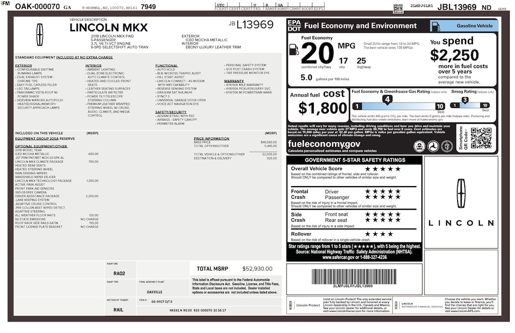 ****SHIPPING AVAILABLE NATIONWIDE! COMPLETE THE ENTIRE TRANSACTION WITHOUT COMING TO THE SHOWROOM!**** O C Welch Ford is pleased to offer this terrific 2018 Lincoln MKX Mocha Reserve with the following features: Driver Assistance Package (Adaptive Cruise Control, Adaptive Steering, Lane Keeping System, and Pre-Collision Assist w/Pedestrian Detection), Equipment Group 300A, GVWR: 5,440 lbs Payload Package, Lincoln MKX Climate Package (Auto High-Beam Headlamps, Heated Rear Seats, Heated Steering Wheel, Rain-Sensing Wipers, and Windshield Wiper De-Icer), Lincoln MKX Technology Package (360 Degree Camera, Active Park Assist, and Front Park Aid Sensors), 10 Speakers, 4-Wheel Disc Brakes, ABS brakes, Adaptive suspension, Air Conditioning, All Weather Floor Mats, Alloy wheels, AM/FM radio: SiriusXM, AM/FM Stereo w/Single CD, AppLink/Apple CarPlay and Android Auto, Auto-dimming door mirrors, Auto-dimming Rear-View mirror, Automatic temperature control, Axle Ratio: 3.39, Brake assist, Bumpers: body-color, CD player, Compass, Cruise Control, Delay-off headlights, Driver door bin, Driver vanity mirror, Dual front impact airbags, Dual front side impact airbags, Electronic Stability Control, Emergency communication system: SYNC 3 911 Assist, Exterior Parking Camera Rear, Four wheel independent suspension, Front anti-roll bar, Front Bucket Seats, Front Center Armrest, Front dual zone A/C, Front fog lights, Front reading lights, Fully automatic headlights, Garage door transmitter: HomeLink, Heated front seats, Heated door mirrors, High-Intensity Discharge Headlights, Illuminated entry, Knee airbag, Low tire pressure warning, Memory seat, Navigation System, Occupant sensing airbag, Outside temperature display, Overhead airbag, Overhead console, Panic alarm, Passenger door bin, Passenger vanity mirror, Power door mirrors, Power driver seat, Power Liftgate, Power moonroof, Power passenger seat, Power steering, Power windows, Prem Lthr-Trimmed Heated/Cooled Bucket Seats, Radio data system, Rear anti-roll bar, Rear Parking Sensors, Rear reading lights, Rear seat center armrest, Rear window defroster, Rear window wiper, Remote keyless entry, Satin Roof-Rack Side Rails w/o Crossbars, Security system, Speed-Sensitive Wipers, Split folding rear seat, Spoiler, Steering wheel memory, Steering wheel mounted A/C controls, Steering wheel mounted audio controls, SYNC 3, Tachometer, Telescoping steering wheel, Tilt steering wheel, Traction control, Trip computer, Turn signal indicator mirrors, Variably intermittent wipers, Ventilated front seats, Voice-Activated Touchscreen Navigation System, and Wheels: 20" Premium Painted Aluminum w/20 Spokes.