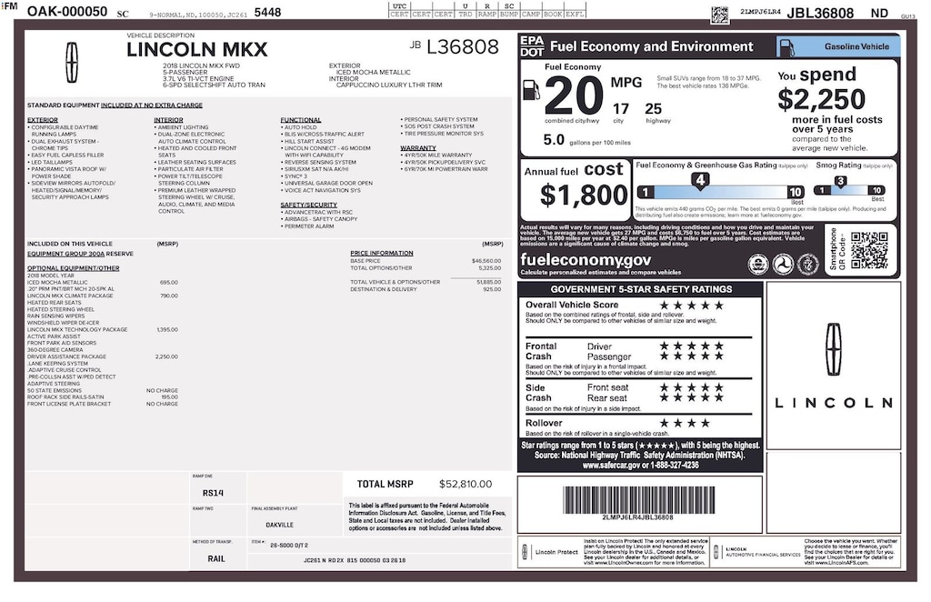 ****SHIPPING AVAILABLE NATIONWIDE! FREE SHIPPING AVAILABLE UP TO 300 MILES! COMPLETE THE ENTIRE TRANSACTION WITHOUT COMING TO THE SHOWROOM!**** O C Welch is proud to present you with another True Market Priced Pre-Owned Vehicle. This 2018 Lincoln MKX Reserve is loaded with the following Factory Options:Driver Assistance Package (Adaptive Cruise Control, Adaptive Steering, Lane Keeping System, and Pre-Collision Assist w/Pedestrian Detection), Equipment Group 300A, GVWR: 5,440 lbs Payload Package, Lincoln MKX Climate Package (Auto High-Beam Headlamps, Heated Rear Seats, Heated Steering Wheel, Rain-Sensing Wipers, and Windshield Wiper De-Icer), Lincoln MKX Technology Package (360 Degree Camera, Active Park Assist, and Front Park Aid Sensors), 10 Speakers, 4-Wheel Disc Brakes, ABS brakes, Adaptive suspension, Air Conditioning, Alloy wheels, AM/FM radio: SiriusXM, AM/FM Stereo w/Single CD, AppLink/Apple CarPlay and Android Auto, Auto-dimming door mirrors, Auto-dimming Rear-View mirror, Automatic temperature control, Axle Ratio: 3.39, Brake assist, Bumpers: body-color, CD player, Compass, Cruise Control, Delay-off headlights, Driver door bin, Driver vanity mirror, Dual front impact airbags, Dual front side impact airbags, Electronic Stability Control, Emergency communication system: SYNC 3 911 Assist, Exterior Parking Camera Rear, Four wheel independent suspension, Front anti-roll bar, Front Bucket Seats, Front Center Armrest, Front dual zone A/C, Front fog lights, Front reading lights, Fully automatic headlights, Garage door transmitter: HomeLink, Heated front seats, Heated door mirrors, High-Intensity Discharge Headlights, Illuminated entry, Knee airbag, Low tire pressure warning, Memory seat, Navigation System, Occupant sensing airbag, Outside temperature display, Overhead airbag, Overhead console, Panic alarm, Passenger door bin, Passenger vanity mirror, Power door mirrors, Power driver seat, Power Liftgate, Power moonroof, Power passenger seat, Power steering, Power windows, Prem Lthr-Trimmed Heated/Cooled Bucket Seats, Radio data system, Rear anti-roll bar, Rear Parking Sensors, Rear reading lights, Rear seat center armrest, Rear window defroster, Rear window wiper, Remote keyless entry, Satin Roof-Rack Side Rails w/o Crossbars, Security system, Speed-Sensitive Wipers, Split folding rear seat, Spoiler, Steering wheel memory, Steering wheel mounted A/C controls, Steering wheel mounted audio controls, SYNC 3, Tachometer, Telescoping steering wheel, Tilt steering wheel, Traction control, Trip computer, Turn signal indicator mirrors, Variably intermittent wipers, Ventilated front seats, Voice-Activated Touchscreen Navigation System, and Wheels: 20" Premium Painted Aluminum w/20 Spokes Please call us Today at 843-288-0220. Thank you very much!